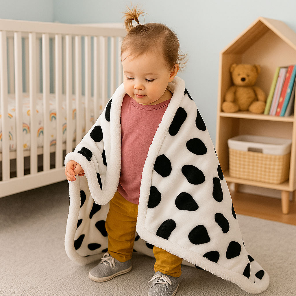 La couverture bébé crée une bulle de bien-être et de sécurité autour de ton petit trésor. Sa texture douce rappelle les câlins et aide à réguler la température corporelle. Elle apaise les pleurs et facilite l’endormissement, tout en ajoutant une touche déco chaleureuse à la chambre.