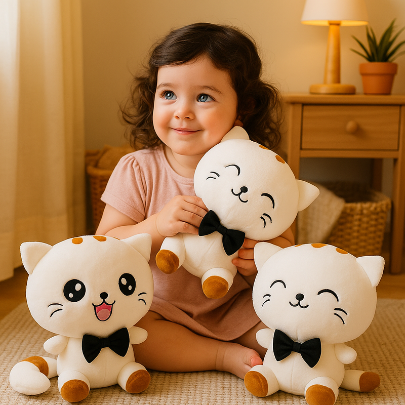 La peluche est bien plus quâun simple jouet : câest un ami fidĂšle qui accompagne lâenfant dans ses moments de tendresse et de repos. Avec son large sourire et son nĆud papillon noir, elle insuffle joie et douceur dans la chambre. Son design adorable et ses dĂ©tails soignĂ©s en font un cadeau parfait pour les tout-petits comme pour les plus grands.