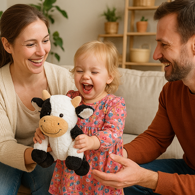 La peluche vache est un prĂ©sent attentionnĂ© qui crĂ©e un lien immĂ©diat avec lâenfant. Sa taille maniable la rend idĂ©ale Ă emporter partout : berceau, poussette, crĂšche.
