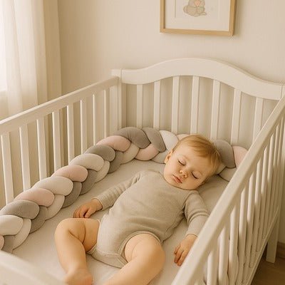 Ce qui compte le plus, c’est la sécurité. Les autorités recommandent pour le sommeil des nourrissons un lit à barreaux vide : sans tresse de lit ni objets mous, sur matelas ferme, avec gigoteuse, dans une pièce à 18–20 °C. Gardez la Tresse de lit pour la déco et les temps d’éveil sous surveillance. Retirez-la pour la nuit.
