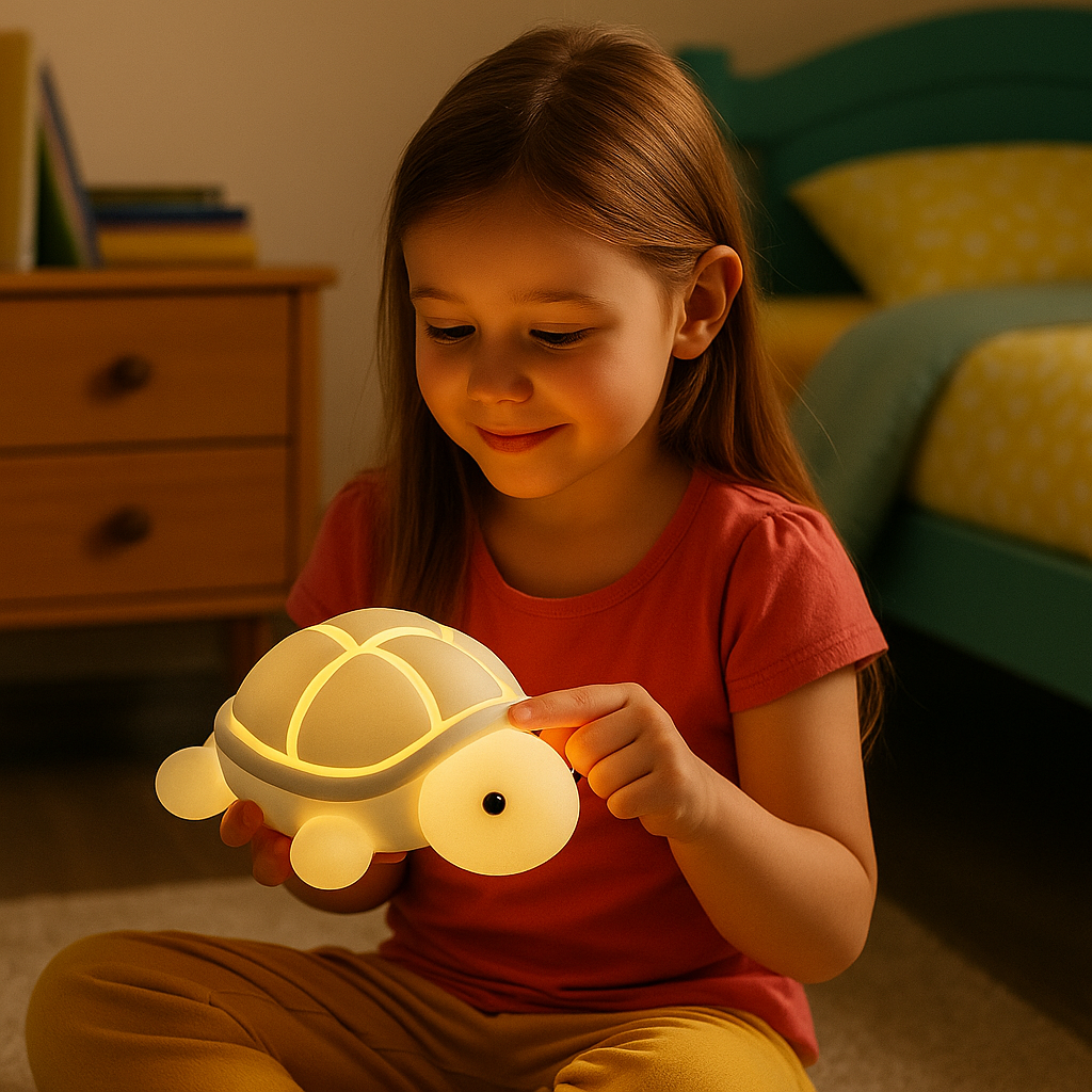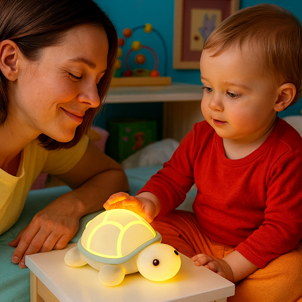 La veilleuse tortue crĂ©e une ambiance chaleureuse et rassurante dans la chambre de bĂ©bĂ©. Avec son design attendrissant et sa lumiĂšre tamisĂ©e, elle transforme le coucher en un moment serein et plein de tendresse. BĂ©bĂ© se sent apaisĂ©, entourĂ© dâune lueur douce qui lâaide Ă sâendormir paisiblement.